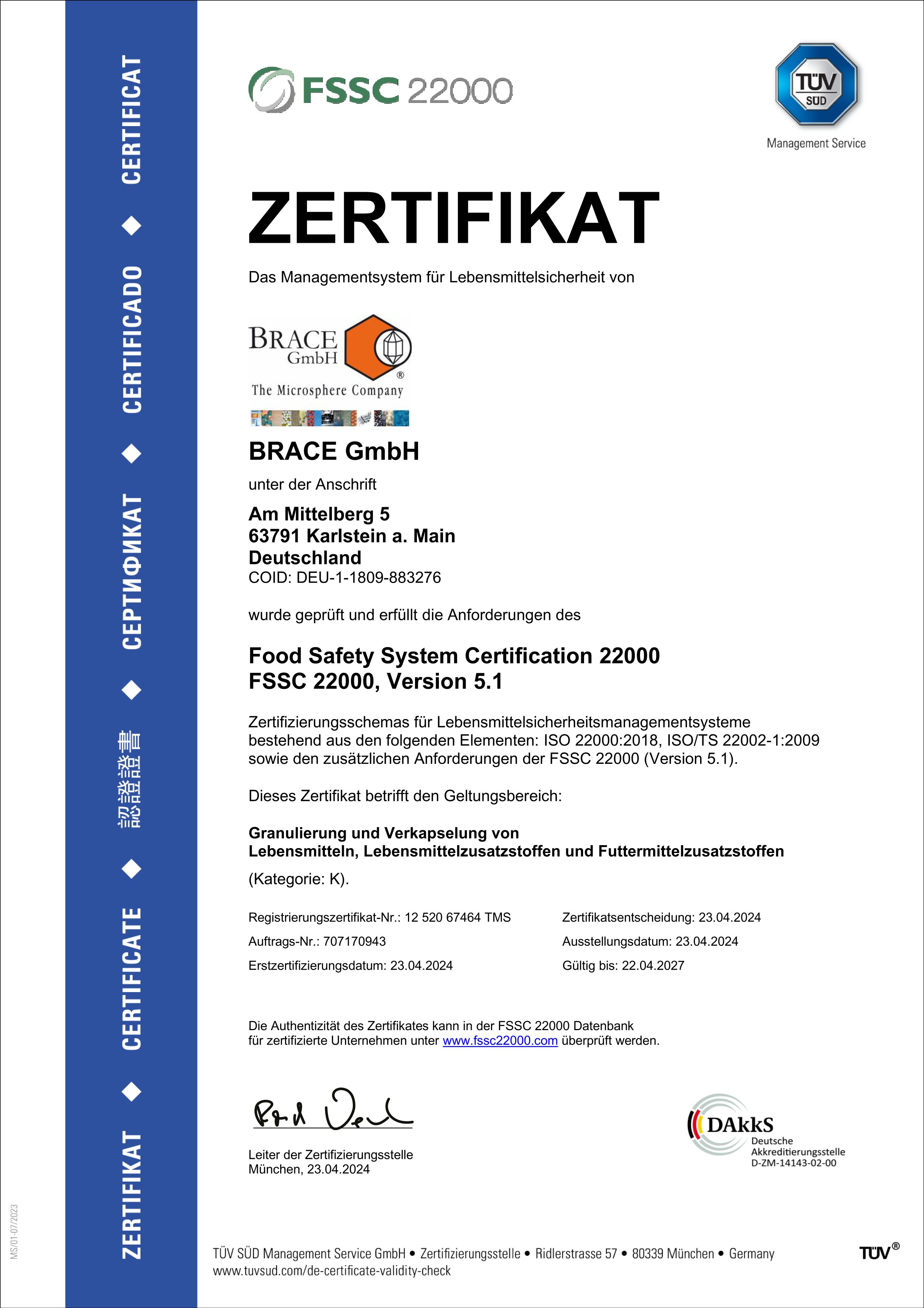 BRACE ist ein weltweit tätiger Spezialist für die Produktion von Mikrokugeln und Mikrokapseln. Mit unseren patentierten Mikrovertropfungsverfahren lassen sich Flüssigkeiten wie Lösungen, Emulsionen, Dispersionen oder Schmelzen einfach, effizient und elegant zu perfekt runden Mikrogranulaten verarbeiten. BRACE entwickelt und bietet Lösungen für die Lebensmittelindustrie, die chemische und die pharmazeutische Industrie, für die Bauchemie – kurzum: für fast jeden Industriebereich, in dem Mikrokugeln oder Mikrokapseln benötigt werden.